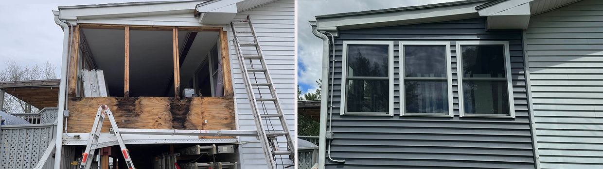 In the process of installation, a lot of rotten wood was discovered. The badly misshapen windows had let in years of rain, unknown to us. They removed all the rotten wood, leveled the porch, and installed the new windows in just over 1 week. We are extremely happy with the quality and the installation of the windows, which slide up and down easily, and lock snugly. They also replaced all the siding on the outside of the porch and everything looks great! We highly recommend this small and growing company for their integrity, honesty, and hard work.